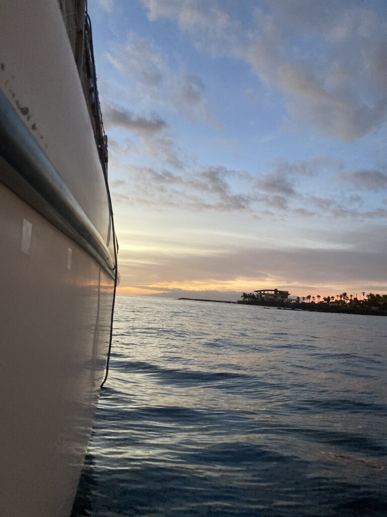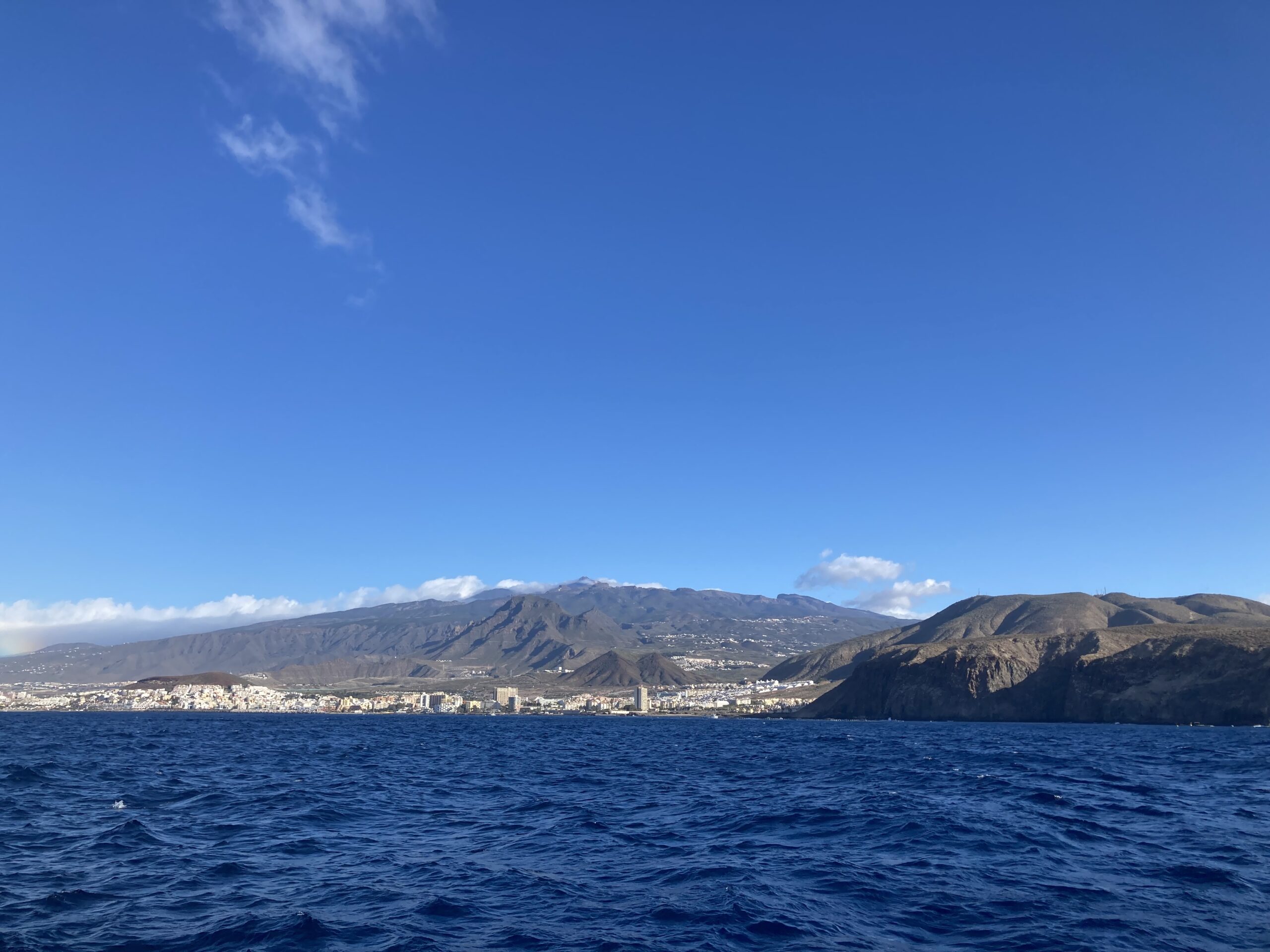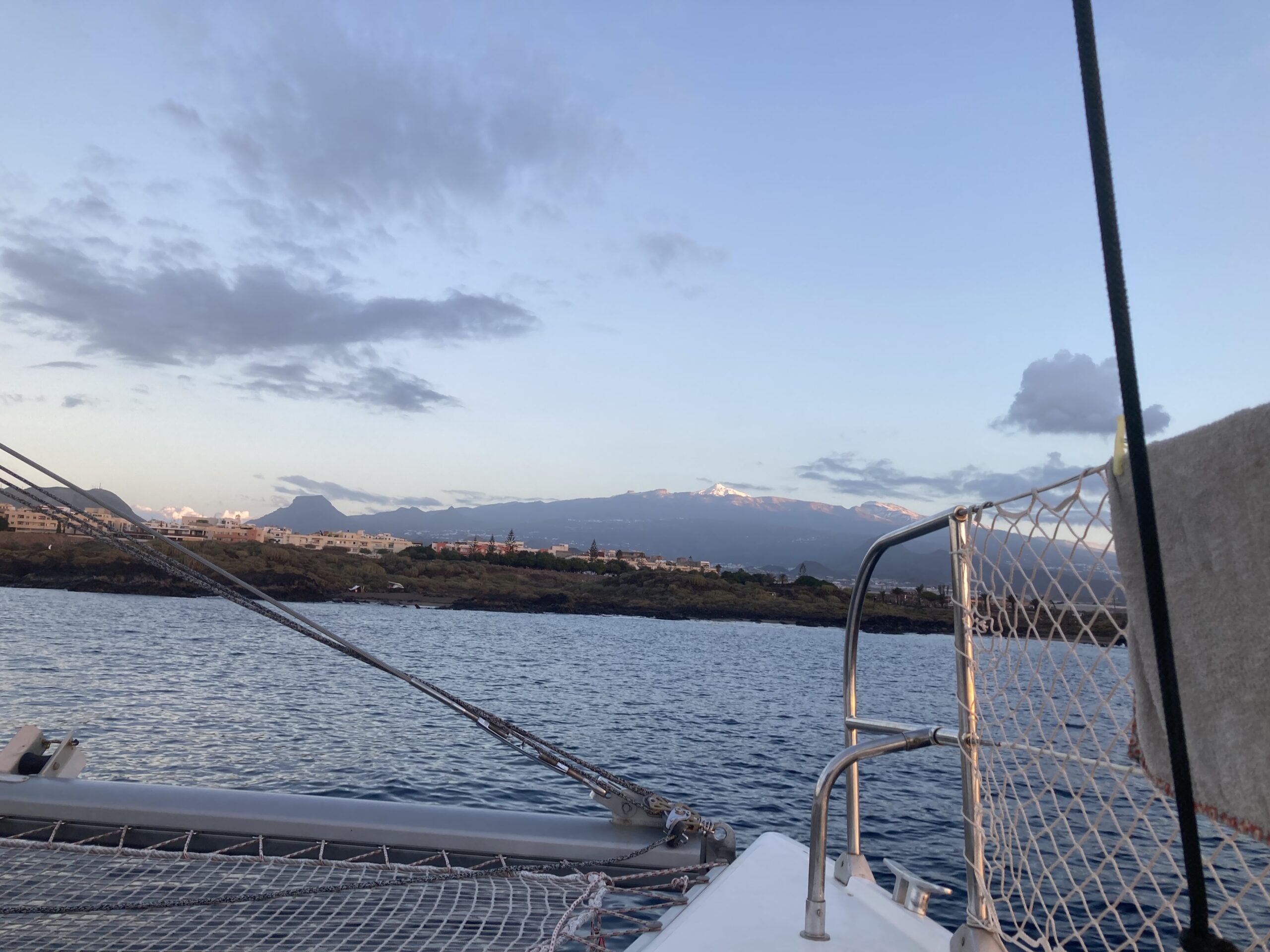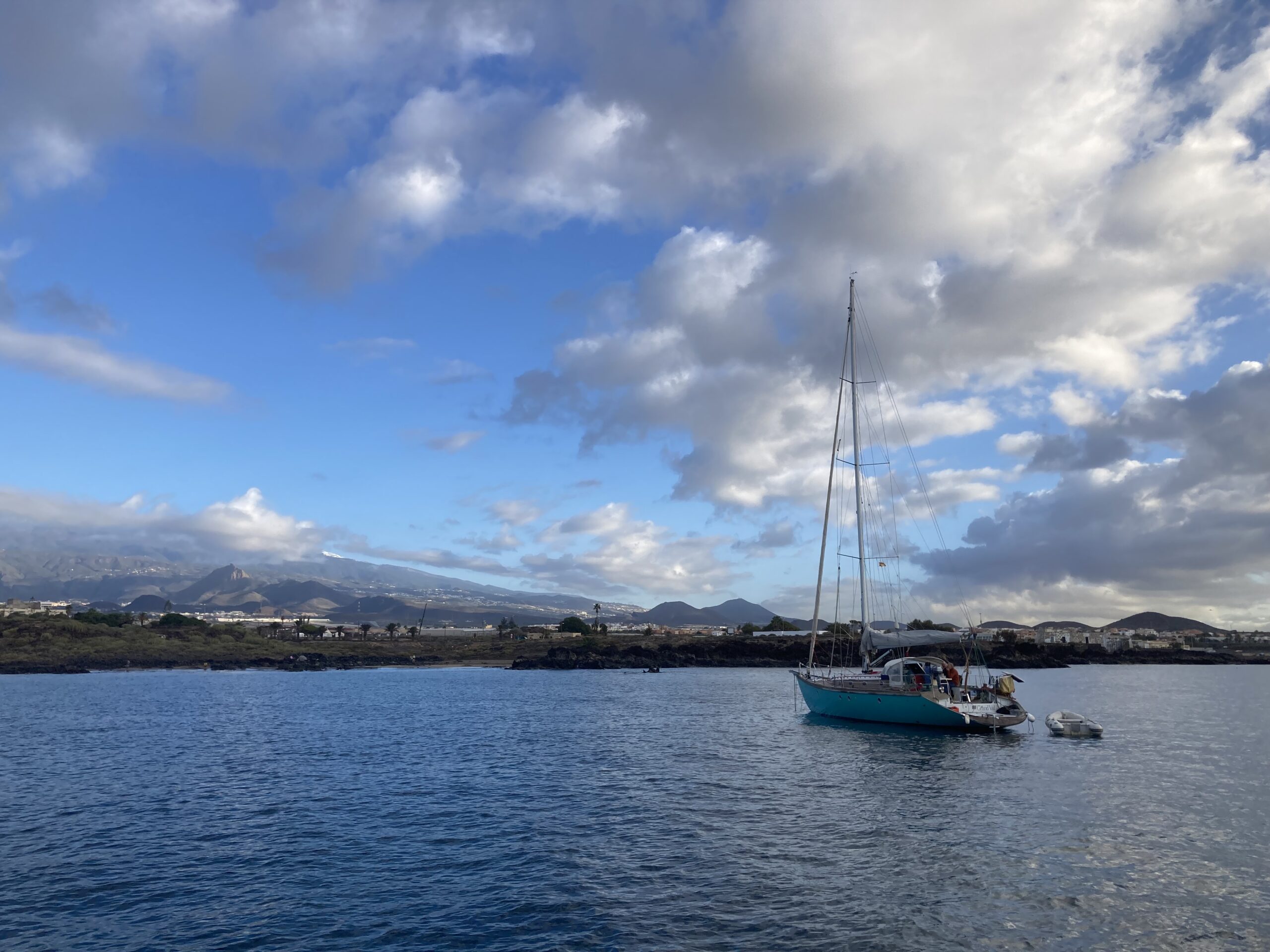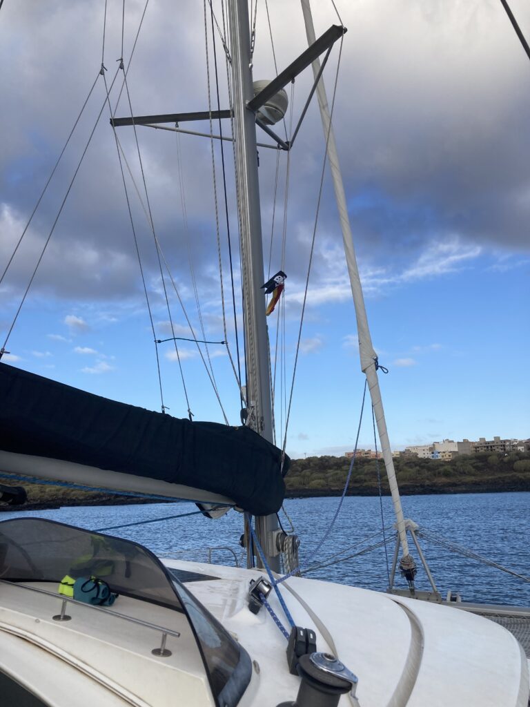 Our last evening in the bay is calm and cosy. The next morning greets us with beautiful weather. Mount Teide shines bright white, still covered in snow. We prepare the boat, everything feels ready: the deck, the lines, our dinghy, all secured and ready.