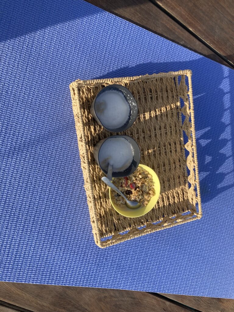 Life on board has found a rhythm of its own. Most mornings begin the same way: I’m the first one awake, and if the deck isn’t still soaked with dew, I roll out a short yoga session on the foredeck while watching the sunrise. Then comes coffee – usually just Yann and me, enjoying the calm before the day begins. Afterwards, breakfast for everyone.
