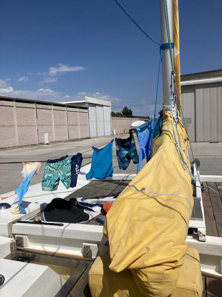 After three intense weeks in the marina, we’re finally back on the move. Those days were filled with endless work, constant waiting for spare parts, and a never-ending list of things to repair or replace – from an engine with unavailable parts to the water system and our newly designed “living room.”