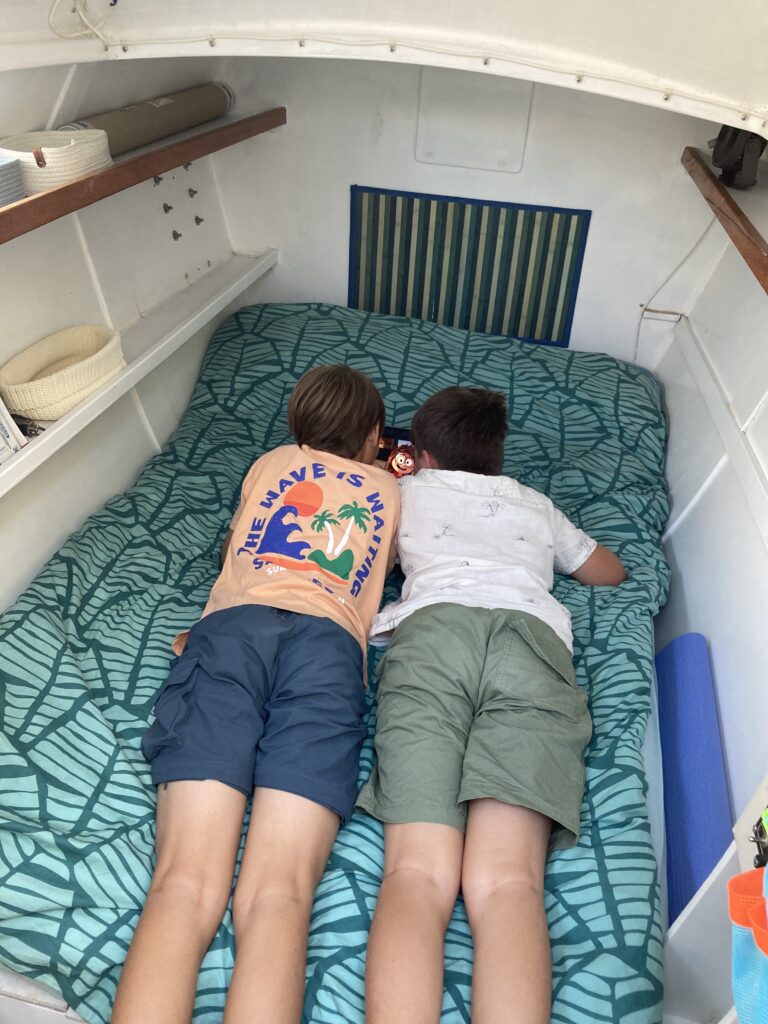 Another challenge remains: keeping the children engaged during long sailing days. For now, they don’t mind at all – they listen to audiobooks, read, watch films, or play games. It works, but it goes beyond the screen time we would normally consider healthy, and that bothers us more than them.